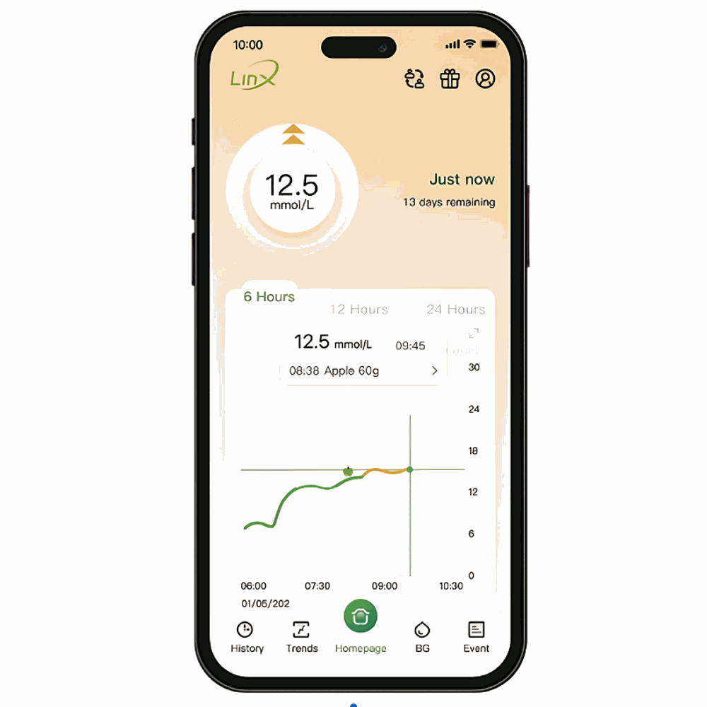 Το LinX CGM χρησιμοποιεί τεχνολογία Bluetooth για μεταφορά δεδομένων σε πραγματικό χρόνο και μεγάλη εμβέλεια στο smartphone σας, σε αντίθεση με τα παλαιότερα μοντέλα που βασίζονται σε NFC. Μείνετε συνδεδεμένοι με τα δεδομένα του σακχάρου σας από οπουδήποτε, απολαμβάνοντας μεγαλύτερη ελευθερία και άνεση στην παρακολούθηση της υγείας σας.